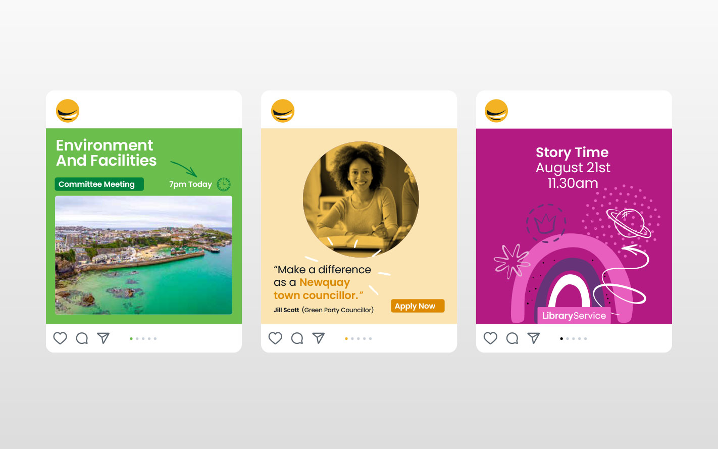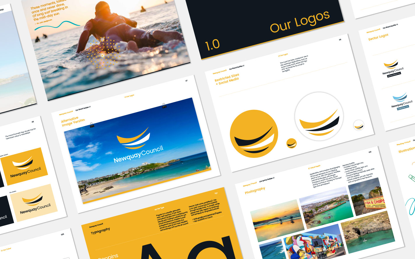 We worked with Newquay Town Council to refresh and refine their brand identity, making it clearer, more accessible and impactful while retaining the original brand mark. This included developing a new font system, refreshed colours aligned with Pantone guidance, and a set of illustrations to give the brand more personality and flexibility.